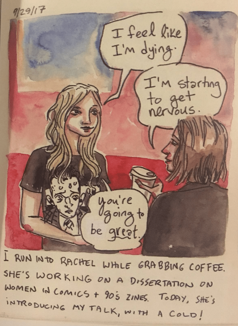 Rachel is currently at work on her first scholarly book about the convergence of mass media and feminist discourse in grassroots texts during the 1990s. The Girls’ Room: Bedroom Culture, Girl Collectors, and the Ephemeral Archive combines meticulous archival research of 1990s-era grassroots media made by girls, such as zines, comics, and VHS chain-letters, with readings of the era’s bestselling memoirs, literary novels, blockbuster films, and self-help books about girlhood. Her scholarship related to this project has been solicited for inclusion in collections like The Oxford Handbook of Comic Book Studies (forthcoming, Oxford UP), The Routledge Companion to Gender and Sexuality in Comics Studies (forthcoming, Routledge) The Other 1980s: Reframing Comics’ Crucial Decade (forthcoming, LSU Press), and Comics Memory: Archives and Styles (Palgrave). You can read more about her scholarship by clicking here and here.